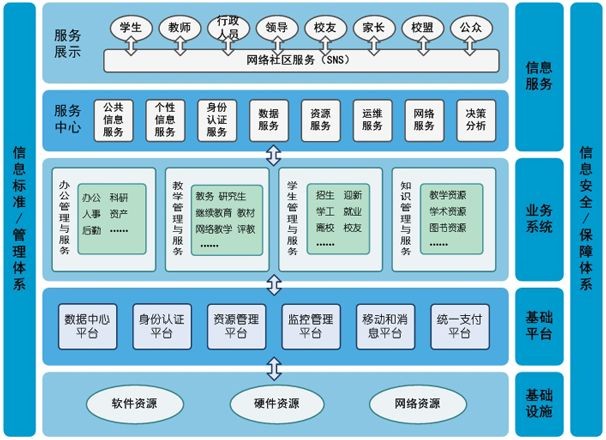 智慧校園建設主要包含統(tǒng)一身份認證系統(tǒng)、門戶系統(tǒng)、統(tǒng)一數(shù)據(jù)中心三大板塊。