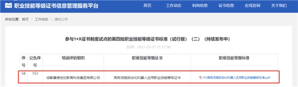 自楷柏財(cái)經(jīng)研發(fā)并由其母公司康德教育集團(tuán)申報(bào)的《商務(wù)流程自動(dòng)化機(jī)器人應(yīng)用》職業(yè)技能等級(jí)標(biāo)準(zhǔn)及其證書(shū)獲批教育部第四批1+X證書(shū)制度試點(diǎn)以來(lái),憑借行業(yè)領(lǐng)先的證書(shū)標(biāo)準(zhǔn)、注重實(shí)操應(yīng)用的課程特色,受到企業(yè)雇主的廣泛認(rèn)可和好評(píng),并與全國(guó)多所職業(yè)院校達(dá)成合作,共同推動(dòng)RPA技能人才培養(yǎng)。