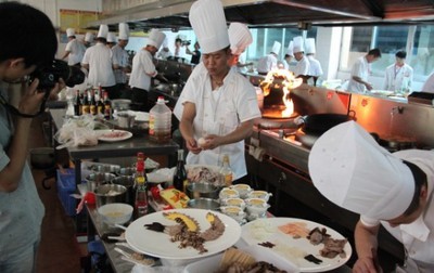 2、技能學(xué)習(xí):烹飪基本功(包含刀工、勺工)、中餐烹調(diào)常用的炒、爆、熘、扒、燒、燴等30種烹調(diào)方法,主要涉及熱菜80個(gè)品種,涼菜45個(gè)品種,冷拼基 本功及高檔花色拼盤6個(gè)品種,可參與第二課堂學(xué)習(xí)雕刻技術(shù)等其它選修課技能。