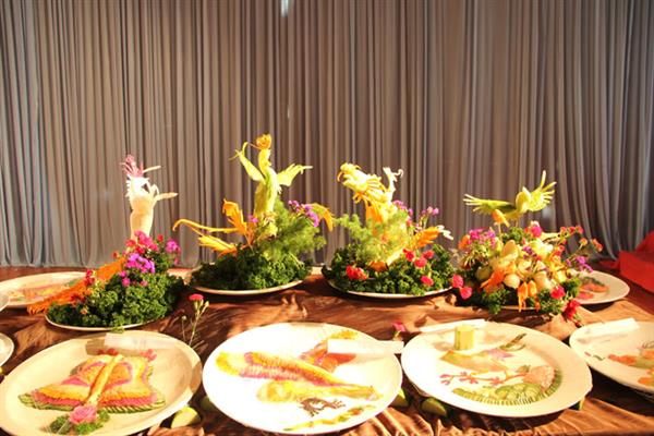 煙臺(tái)工貿(mào)技師學(xué)院舉行的此次活動(dòng)共有222人參加,參加賽事的共有兩個(gè)大項(xiàng)六個(gè)小項(xiàng)進(jìn)行參賽,總共包括烹飪專業(yè)勺工、拉肉絲、疙瘩切絲、土豆切絲和面點(diǎn)專業(yè)搟餃子皮并包餃子、抻面等。還有雕刻技能的展示,共制作了龍鳳呈祥、百花齊放、喜慶豐收、海鮮薈萃雕刻冷拼中西面點(diǎn)展示。