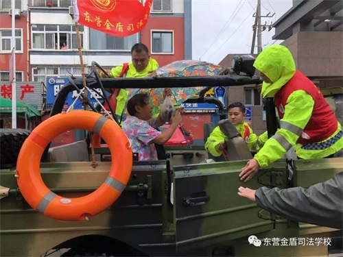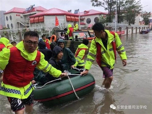 8月11日,在第9號臺風(fēng)“利奇馬”的影響下,東營已經(jīng)歷了長達一天一夜的暴雨侵襲,部分主干路及居民小區(qū)都被積水浸泡,有居民被困家中,暴雨的肆虐嚴重威脅了人們的生命和財產(chǎn)安全。東營金盾司法學(xué)校參與救援。