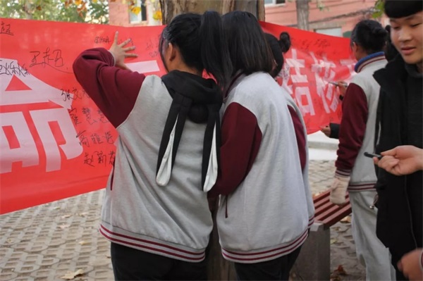 通過醒目的條幅簽字方式,讓同學們意識到抗結核不是說說而已,而是要付諸行動。同學們也紛紛向前寫下自己的名字,發(fā)表自己的決心。預防肺結核,從身邊小事做起,從你我做起。