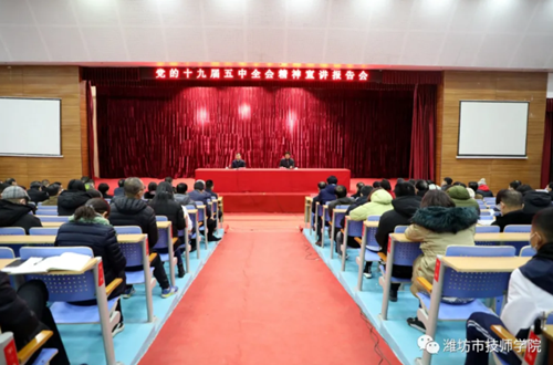 1、掀起學習宣傳貫徹黨的十九屆五中全會精神熱潮。為深入學習宣傳貫徹黨的十九屆五中全會精神,濰坊技師學院專門研究制定了《中共濰坊市技師學院委員會黨的十九屆五中全會精神宣講工作實施方案》。邀請市委常委、秘書長李蘭祥到校做黨的十九屆五中全會精神主題形勢政策報告,將黨的十九屆五中全會精神學習納入黨委理論學習中心組集體學習研討內容,黨委書記、院長及班子成員,各黨支部書記、思政課教師等分層次、分批次對全會精神進行宣講,做到全院師生全覆蓋,掀起學習宣傳貫徹黨的十九屆五中全會精神熱潮。
