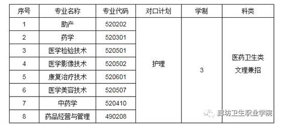 學(xué)校名稱(chēng):廊坊衛(wèi)生職業(yè)學(xué)院辦學(xué)類(lèi)型:公辦全日制普通高校 學(xué)校代碼:14335 辦學(xué)層次:專(zhuān)科 一、相關(guān)專(zhuān)業(yè)招生要求 1.依據(jù)教育部《普通高等學(xué)校招生體