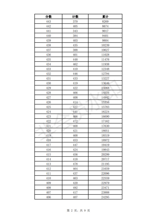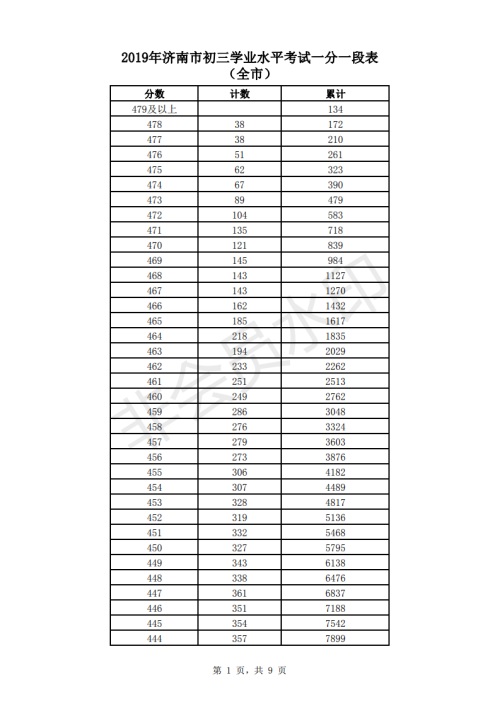 2019年濟(jì)南市中考成績一分一段表