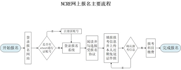 考生登錄中國教育考試網(wǎng)(http://www.neea.edu.cn)點擊進入“全國計算機等級考試”項目,按照相關(guān)提示完成信息填寫、照片上傳、繳費等步驟。